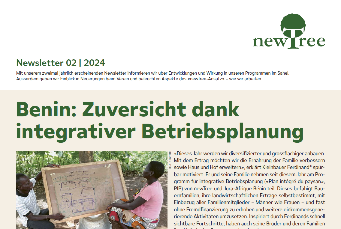Resilienz stärken im Sahel In dieser Newsletter-Ausgabe zeigen wir, wie newTree und seine lokalen Partner die Resilienz von Bauernfamilien und insbesondere auch von Frauen stärken....